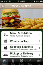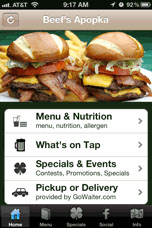The Beef 'O" Brady's Apopka App offers you the ability to view our menu of delicious food as well as call to place a pickup order. You will also have the ability to place a delivery order via GoWaiter.com right from with the app. There is also a list of what we currently have on Tap. The What's on tap section gives you a detailed description of the many import, craft and micro brews we have on tap. You will even have the ability to vote on your favorite beers.
