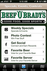 Here are a few of the many features available to you in the Beef 'O" Brady's Apopka app.